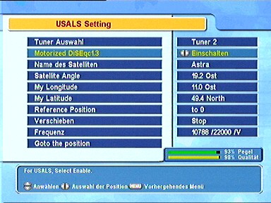 7.6.4.1. Kanalsuchlauf Nach dem Sie den DiSEqC-Motor konfiguriert haben, können hier direkt mit der Sendersuche des eingestellten Satelliten beginnen. Drücken Sie dazu 7.6.5. USALS 1.3 Motorsteuerung
