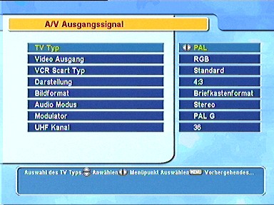 Ihr PVR hat viele AV-Ausgänge. Diese Einstellungen richten sich nach den angeschossenen Geräten. Diese Anpassungen werden hier vorgenommen.